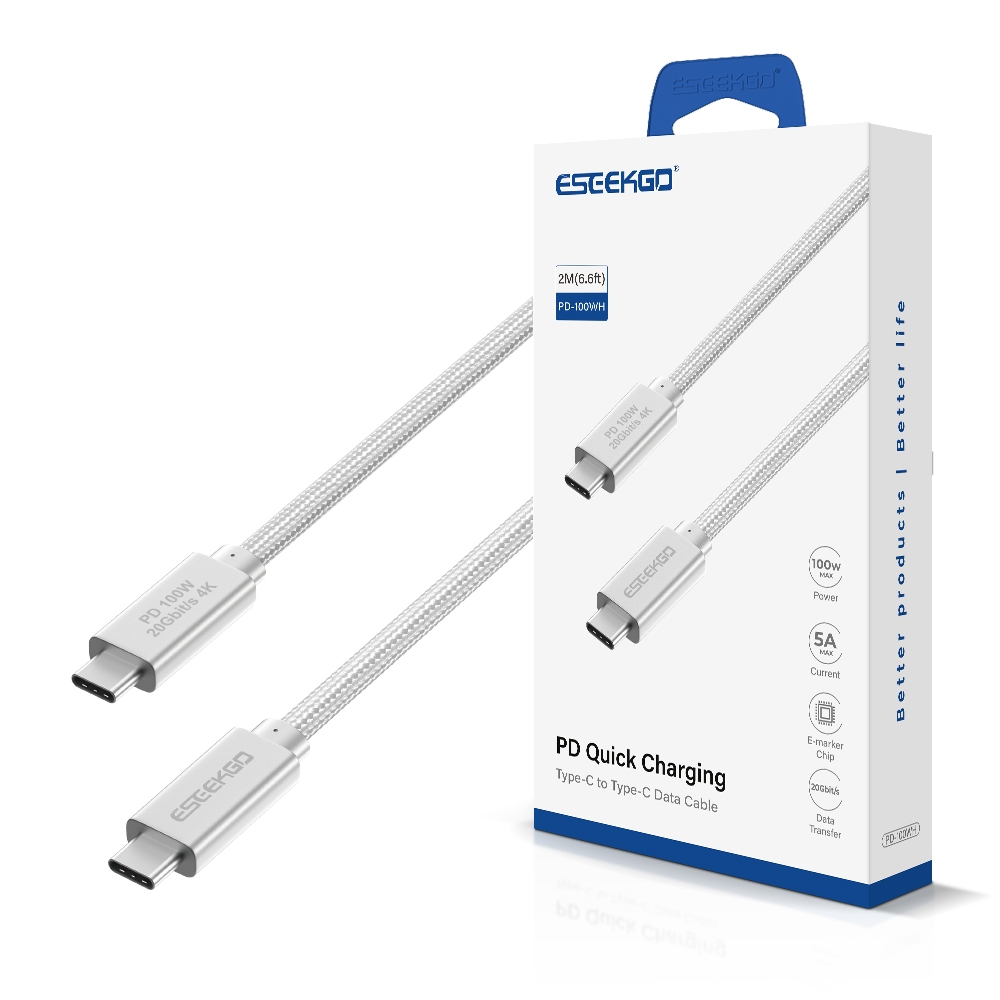 ESEEKGO PD-100WH USB-C To USB-C 100W/5A 3.3FT/6.6FT Data Cable